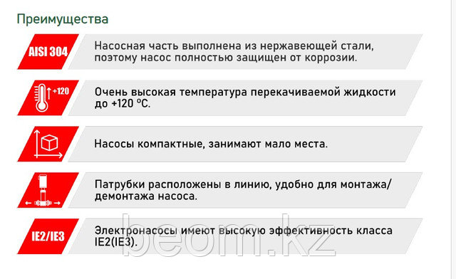 Перекачивание чистой воды или сходных по химическому составу жидкостей. Водоснабжение высотных домов, гостиниц, в системах повышения давления, отопления, пожаротушения, на производстве и в пищевой промышленности. Эксплуатационные возможности: Максимальная производительность серии до 240 м3/час, максимальный напор до 330 м.