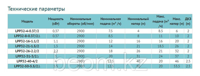 Основные характеристики насоса LEO LPP 32-40-4/2