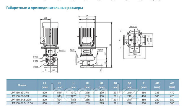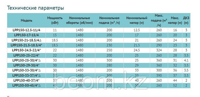 Основные характеристики насоса LEO LPP150-21.5-18.5/4