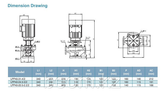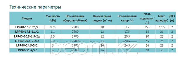 Основные характеристики насоса LEO LPP 40-31-4/2
