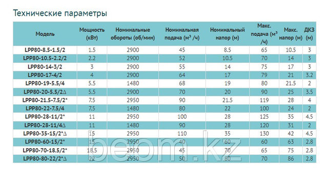 Основные характеристики насоса LEO LPP80-10.5-2.2/2